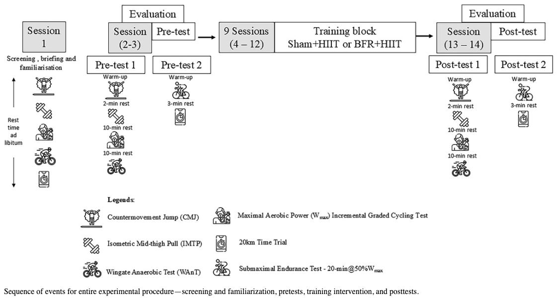 Interventions were completed during rest periods of three sets of 8 × 30 s cycling at 90%-105% maximal aerobic power 🚴♂️