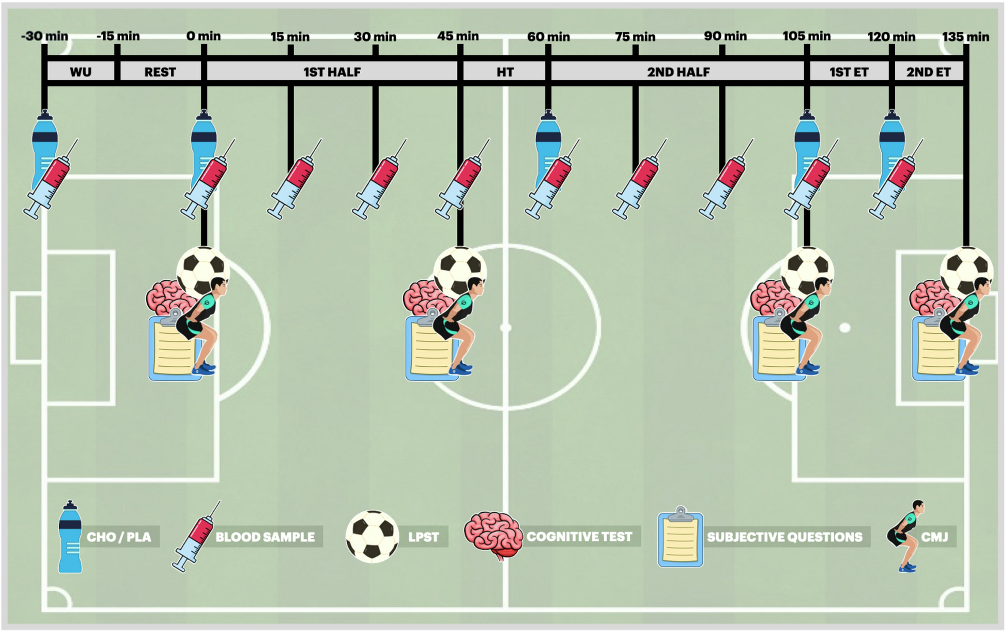 Blood samples, physical performance and cognitive function were assessed throughout the match 🔍