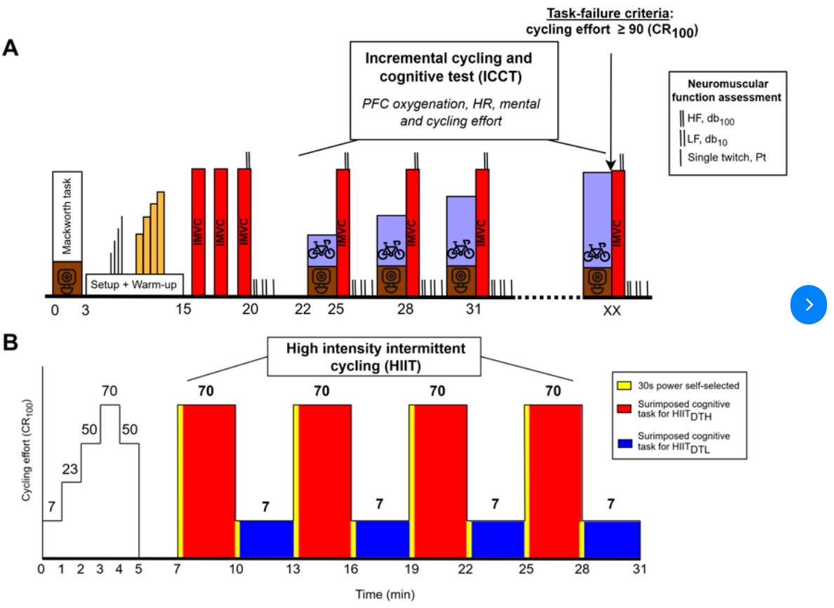 Cognitive testing consisted of incremental cycling cognitive tests until reaching task failure 🚴♂️