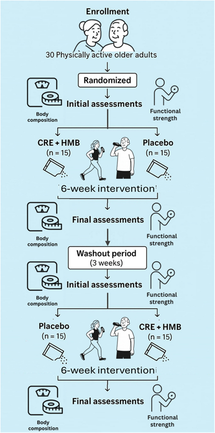 Combined creatine and HMB co-supplementation improves functional strength independent of muscle mass in physically active older adults: a randomized crossover trial