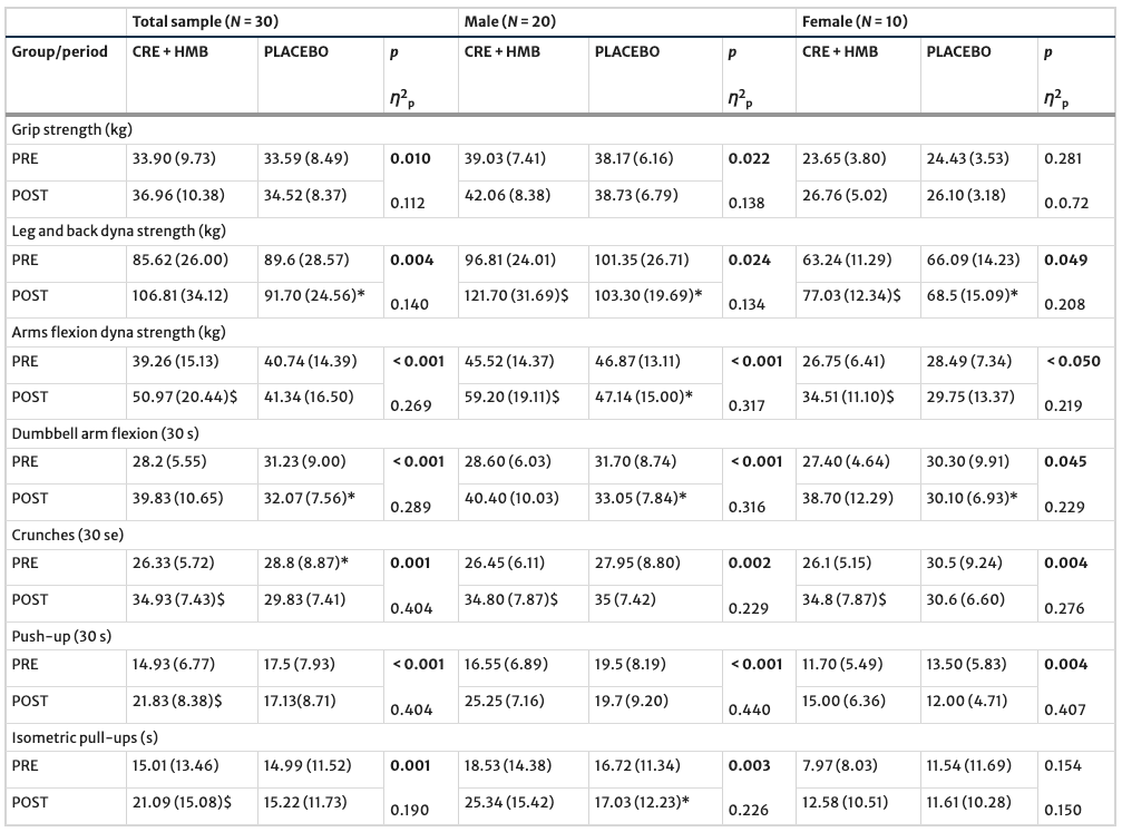 However, the creatine + HMB group significantly improved multiple functional strength outcomes, including…
