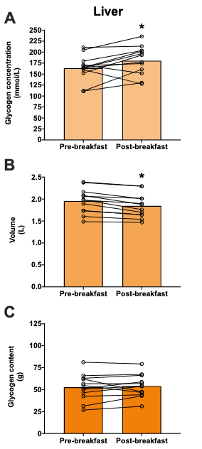 Consequently, no net change in overall liver glycogen content was observed following breakfast ingestion 🤷♂️