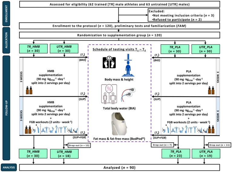 High-dose medium-term HMB supplementation did not trigger body composition changes in trained and untrained males under usual conditions or high-intensity functional exercise