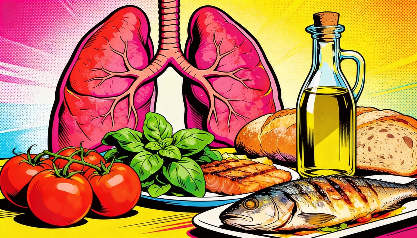 🫁 VO2max improvement was greater in the Mediterranean diet group vs control group (2.4 ± 1.6 vs. 1.3 ± 1.4 mL/kg/min)