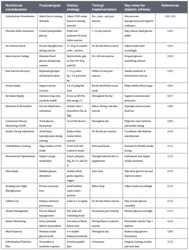 Nutritional considerations for athletes with diabetes: optimizing performance and glycemic control