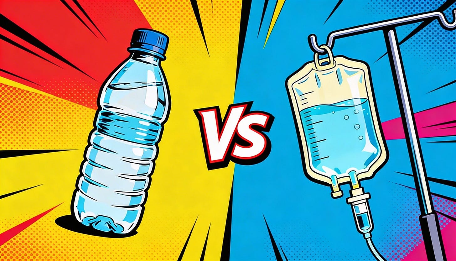 Oral rehydration vs intravenous rehydration💧