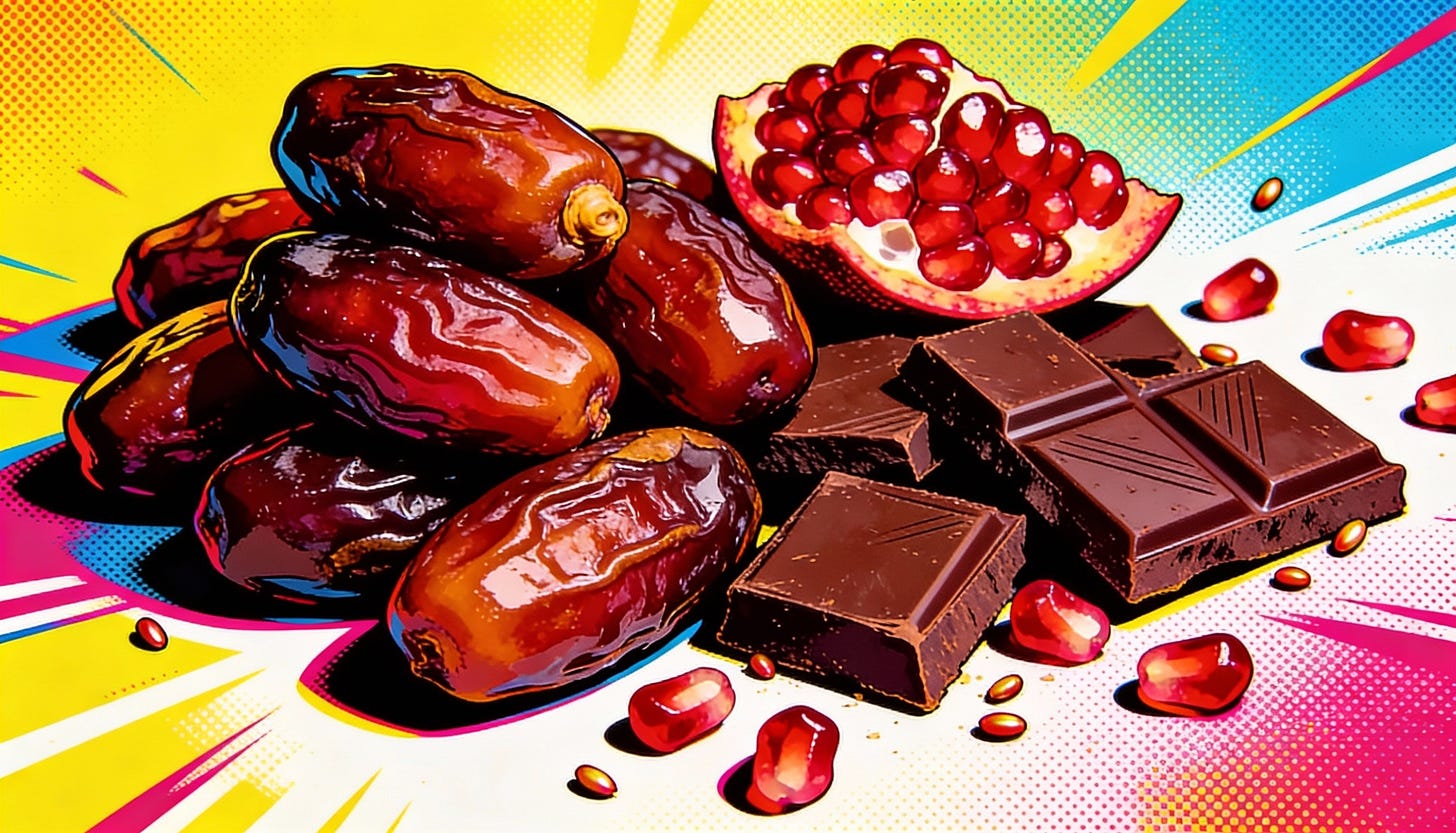 1οΈβ£ High-polyphenol foods (dates, dark chocolate, pomegranate - 285.1 mg/day)