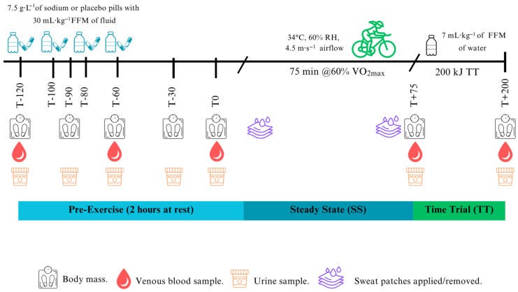 Sodium hyperhydration effectively enhanced fluid retention and reduced body mass loss during exercise in the heat ✅