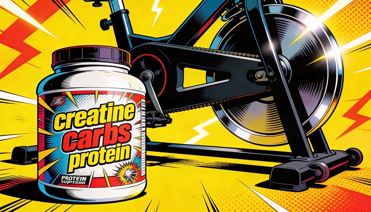 3️⃣ Creatine + Carbs (0.8 g/kg) + Protein (0.2 g/kg)